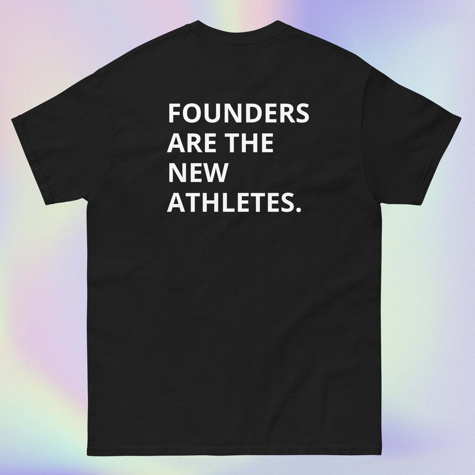 The FATNA Tee in Black features our Emblem logo embroidered on the left chest and our bold FATNA phrase “Founders Are The New Athletes” printed across the back.